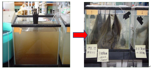 图1.13 生物碳纤维水处理三小时后效果对比